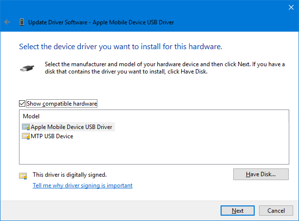 install iphone drivers on windows 10 8