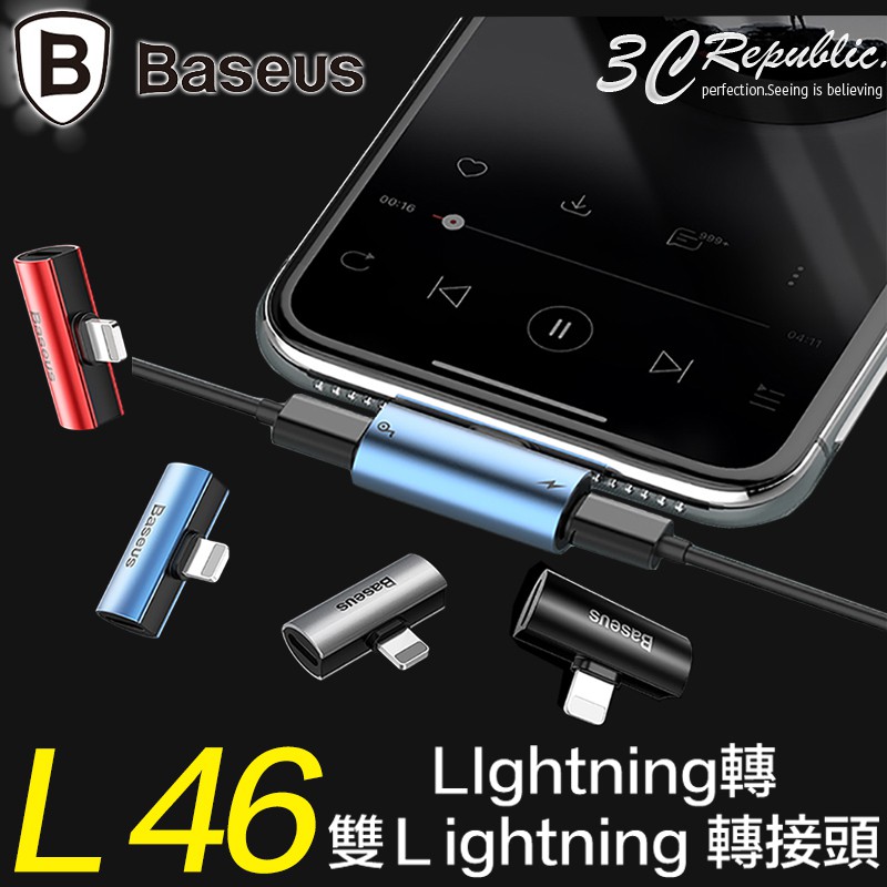 baseus audio converter l46 adapter przejsciowka ze zlacza lightning na 2x port lightning czarny cal46 01
