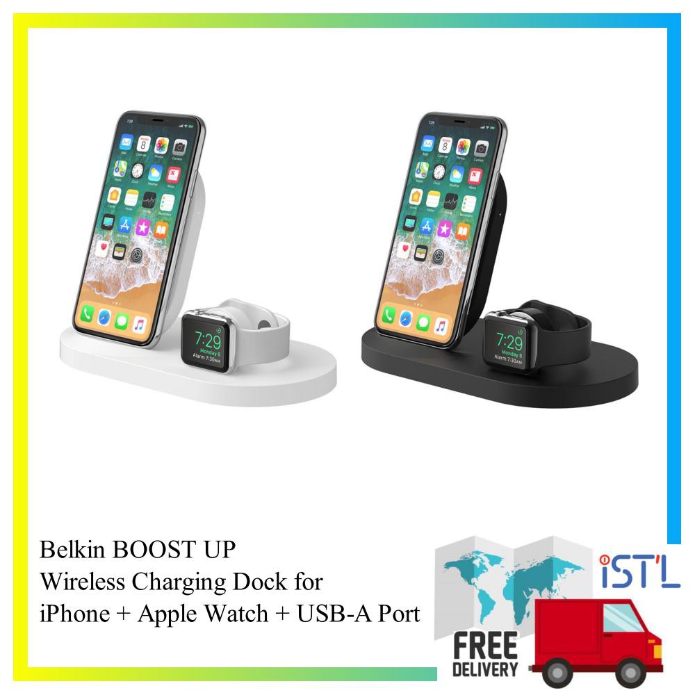 belkin boostup wireless charging dock for iphone apple watch with usb type a port white