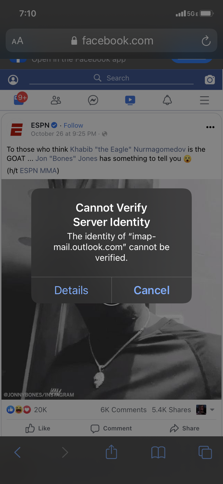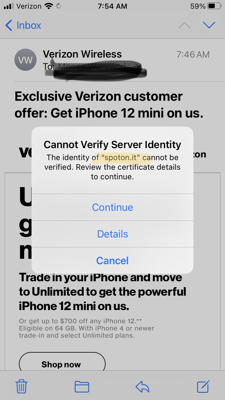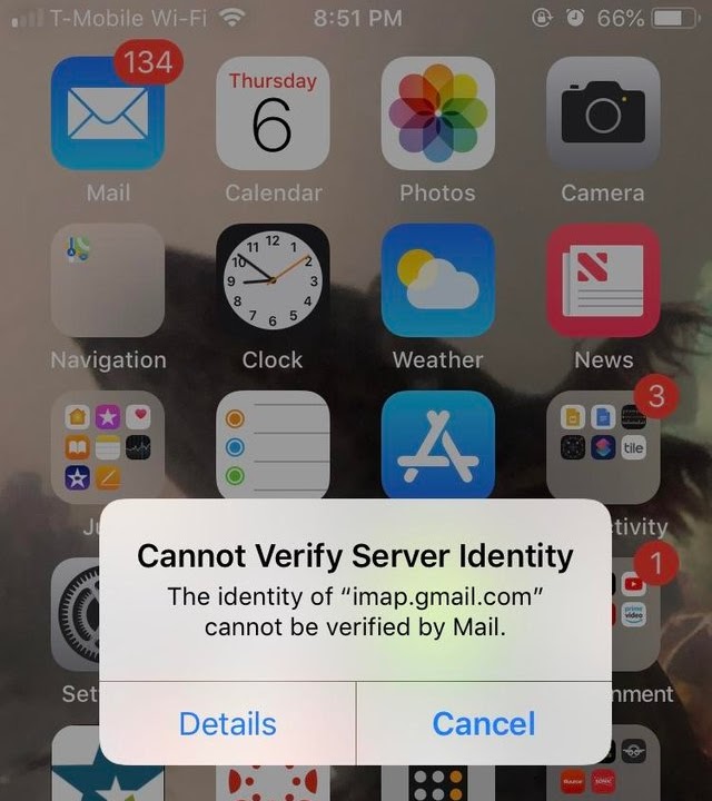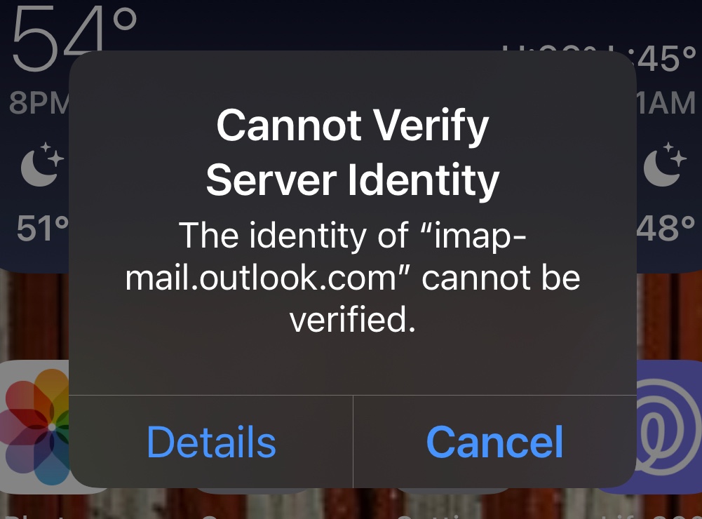cannot verify server identity mail app