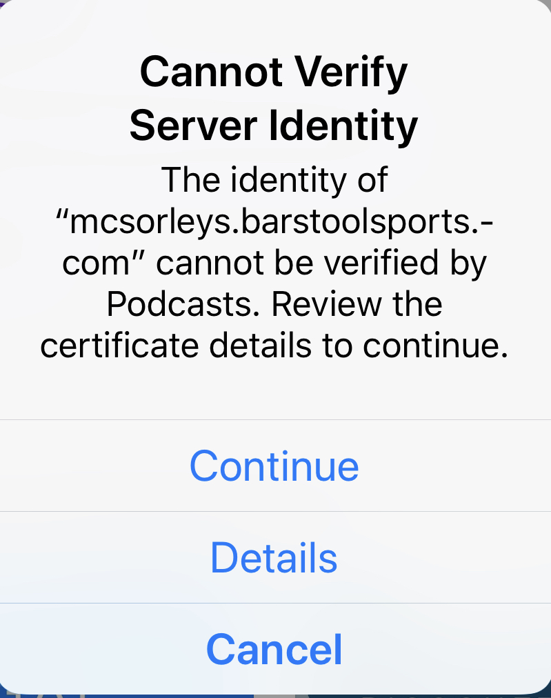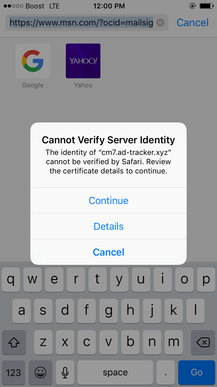 cannot verify server identity on iphone