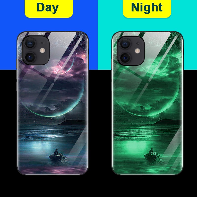 glow in the dark glass phone case iphone 11 11 pro max iphone 12 iphone 6 6s iphone 7 7 plus 8 8 plus iphons 6 plus 6s plus luminous fashion hard