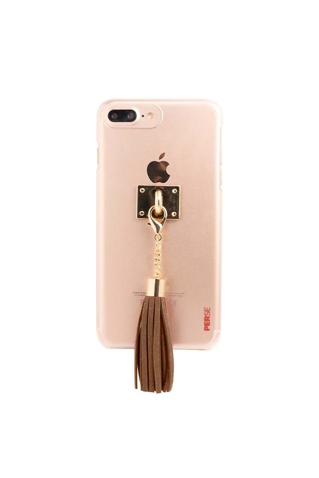 perse apple iphone 8 plus iphone 7 plus transparent hard back fashion case cover with detachable tassle light tan