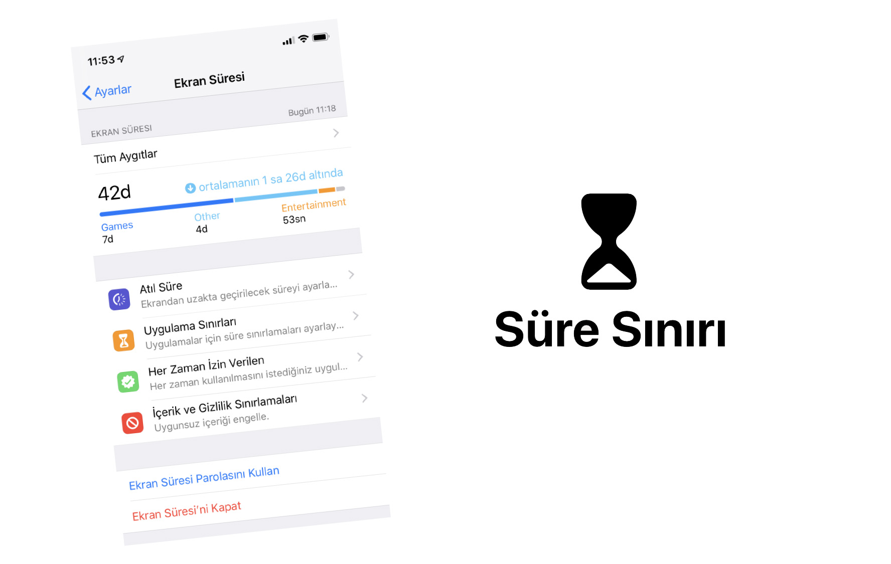 ios 12 ekran suresi ve uygulama siniri