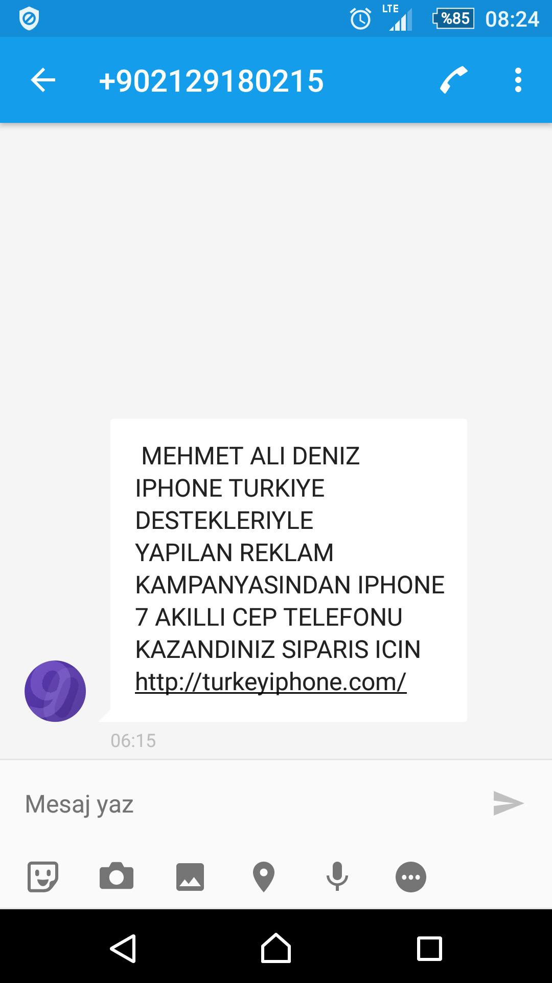 anneme odul kazandiniz diye mesaj