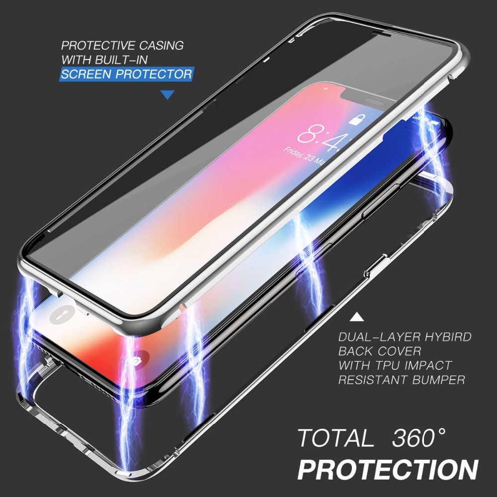 anti peeping magnetic double side glass case for iphone 8 plus iphone 7 plus screen protector privacy tempered glass metal bumper cover red