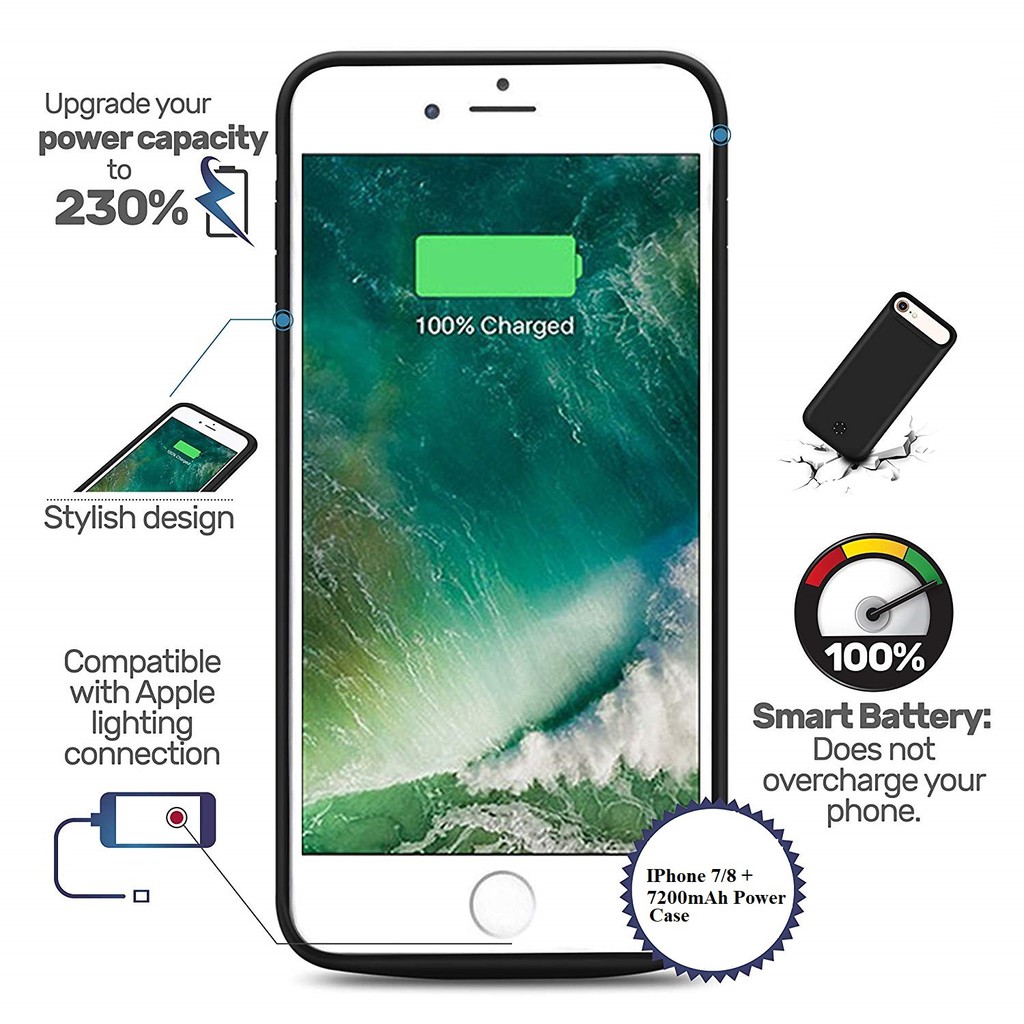 iphone 8 plus 4000mah powercase powerbank oplader batterij cover case hoesje