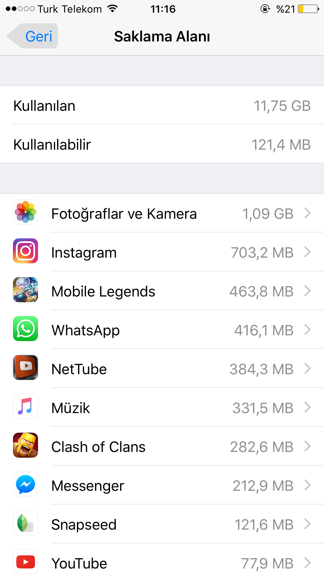 iphone saklama alani hafiza dolu