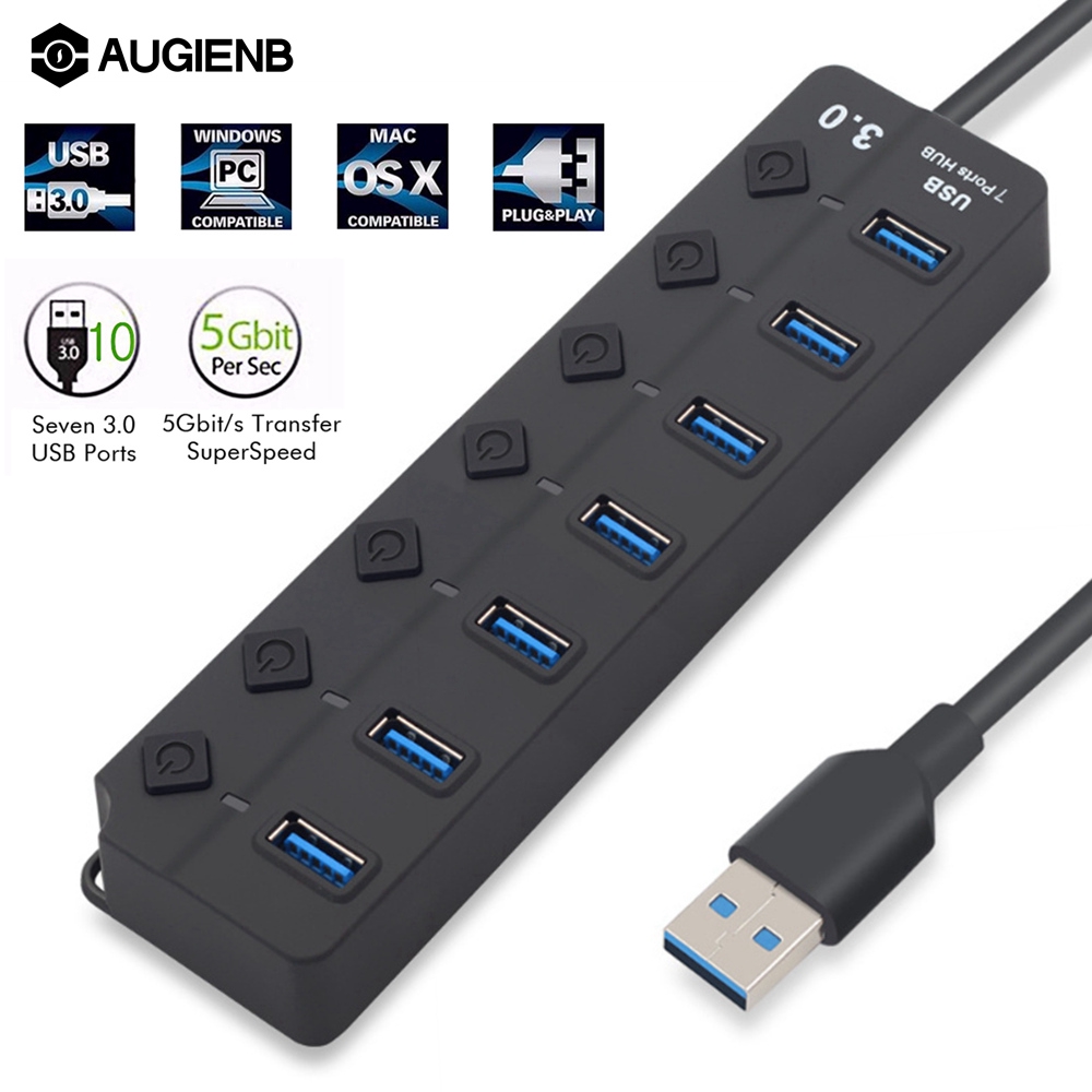 aukey usb 3 0 hub with 10 data transfer ports for iphone 7 iphone 6s iphone 6s plus ipad samsung and more