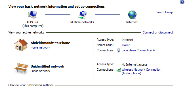 networking via iphone hotspot and win 7