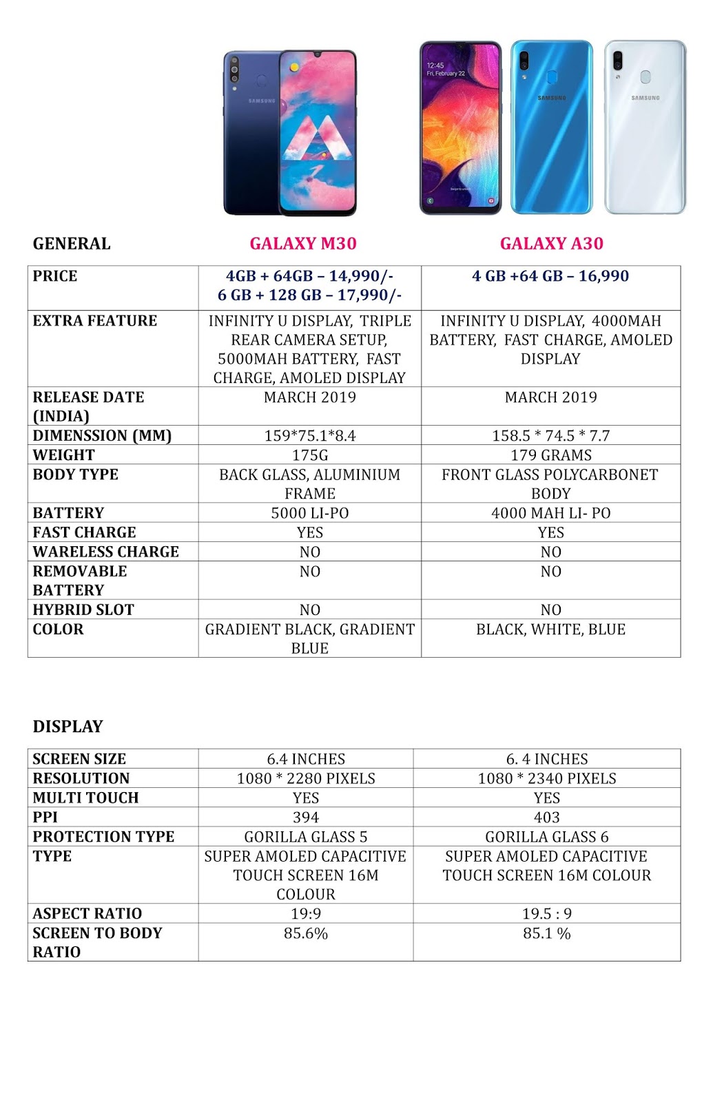 samsung galaxy m30 vs samsung galaxy